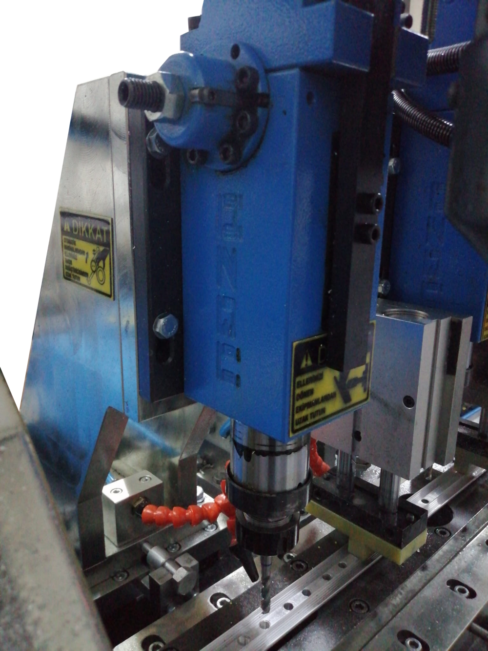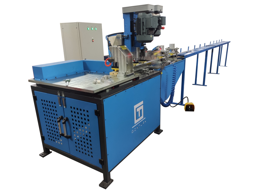 Alüminyum profillerin delme, havşa, kılavuz çekme ve kesme işlemlerini ±0,1 mm hassasiyet ile gerçekleştirir. Boy şeklinde gelen profil makinenin besleme sehpasına konulur, sıfırlama dayaması yapıldıktan sonra servo motor otomatik olarak ilerletme işlemini başlatır ve diğer işlemler CNC sistemi ile otomatik olarak devam eder.
