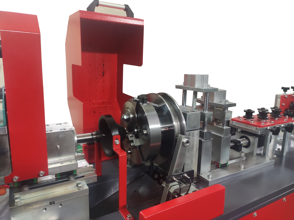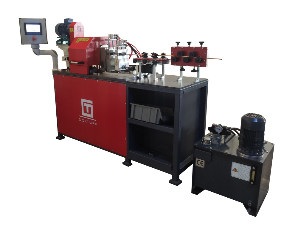 Rulo malzemede dikey ve yatay doğrultma ünitelerinden geçen malzeme düz boy haline getirilerek servo motor ile istenilen uzunluğa beslenir. Servo motor besleme işini fiber tutucular ile yapar, her boru çapına göre modüler fiber tutucular mevcuttur ve değiştirip üretim için ayarlaması çok kolaydır. İstenilen uzunluğa beslenen malzemenin kesilmeden önce tek taraflı olarak boru havşa işlemi yapılır ardından talaşsız kesim işlemi yapılır. Kesilen malzeme boşaltma tepsisine düşer.